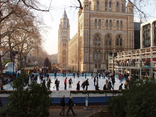 Victorian architecture framing skating facilities creates period drama atmosphere. Ornate ironwork, historic facades, and grand public buildings transport visitors to earlier eras. The juxtaposition with contemporary festive elements creates timeless rather than dated feelings.